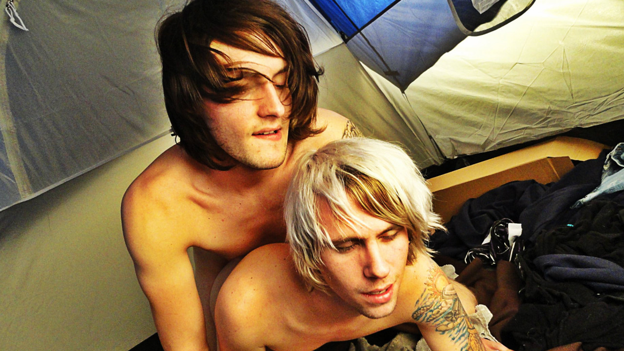 Kail once again pulls out his handicam and films himself getting a bj from the other shaggy protester. He can’t resist. It looks and feels so good! When he’s good and hard, he puts his camera away and takes his place under Christian to plow his asshole hard. Christian climbs on and takes it up the butt like a champ. He rides Kail’s cock as the slapping sounds get louder and louder. Kail needs a bit more control so he flips Christian over and plows him from behind doggie style. Kail is a shaggy stud sex machine, built to please.